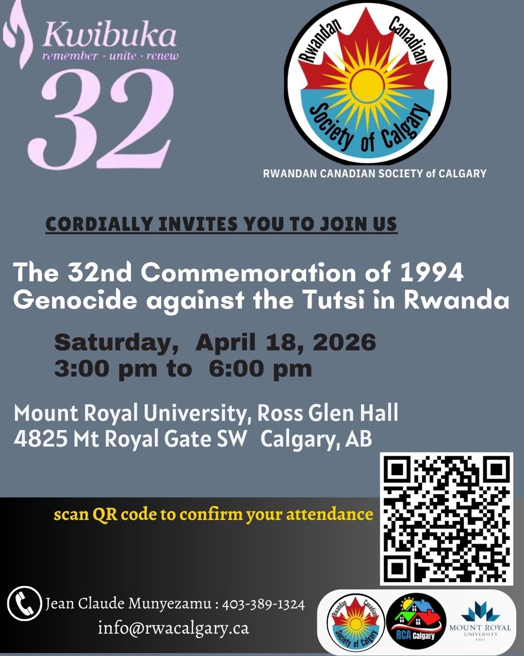 To attend this event, you must first register. Please scan QR code on flyer to RSVP. Kwibuka 32 in Calgary