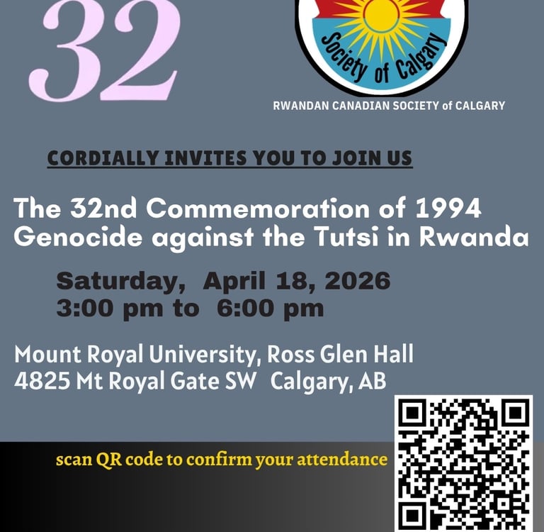 The Rwandan Canadian Society of Calgary and friends are coming together to host a powerful and reflective event to honor the victims of the 1994 Genocide against the Tutsi in Rwanda.